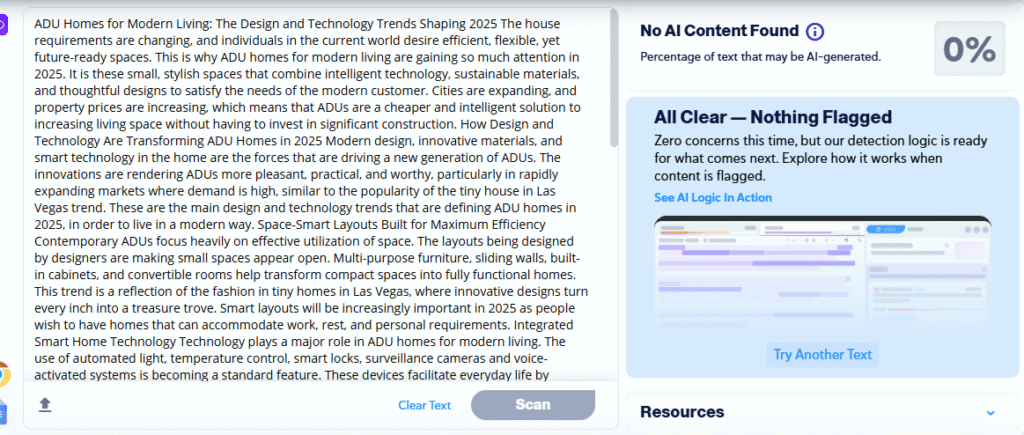 Privacy is a top priority, particularly in cases where ADUs are to be introduced to the available properties. Designers are employing the concept of strategic positioning of windows, soundproofing, private access, and landscape designs in 2025 to develop an independent feel for ADU residents. This method will enable the homeowner and tenant to have different lives without compromising comfort. Privacy-oriented design is also a key feature that rental markets boast, where small homes, such as tiny homes in Las Vegas, are in high demand.